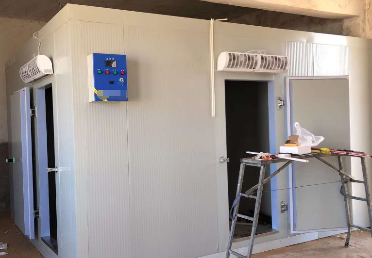 20平保鮮冷庫(kù)尺寸:長(zhǎng)5m*寬4m*高2.5m,六面體庫(kù)體保溫材料采用的是100mm聚氨酯雙面彩鋼板保溫庫(kù)板:占地面積20平,制冷系統(tǒng)采用的是1套4P箱式頂出風(fēng)渦旋制冷機(jī)組。
